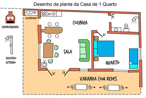 The 1 Bedroom Houseis for 2/4 persons, 60m², one Bed-Room, split air conditioning and roof fan, wooden ceiling, security safe, bathroom, full kitchen, microwave oven, LED Cable TV, wireless, barbecue area and gallery with hammocks overlooking a private garden and parking.